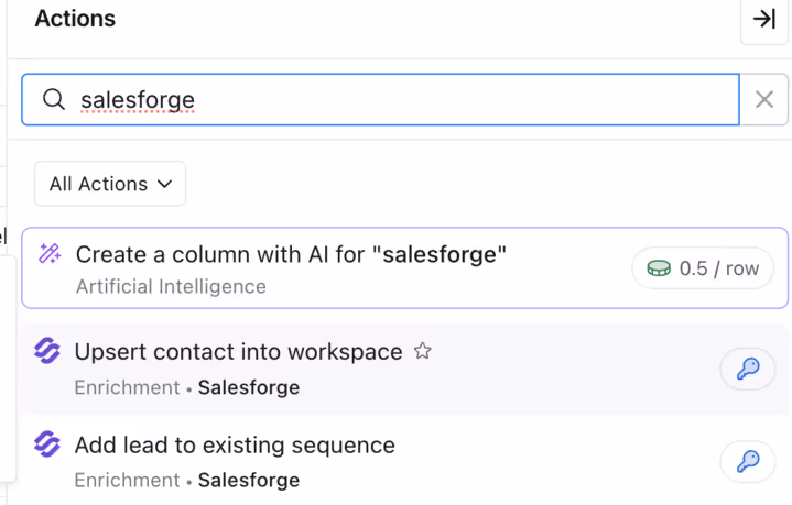 In Clay, add a new enrichment, select Salesforge, and paste in your API key.